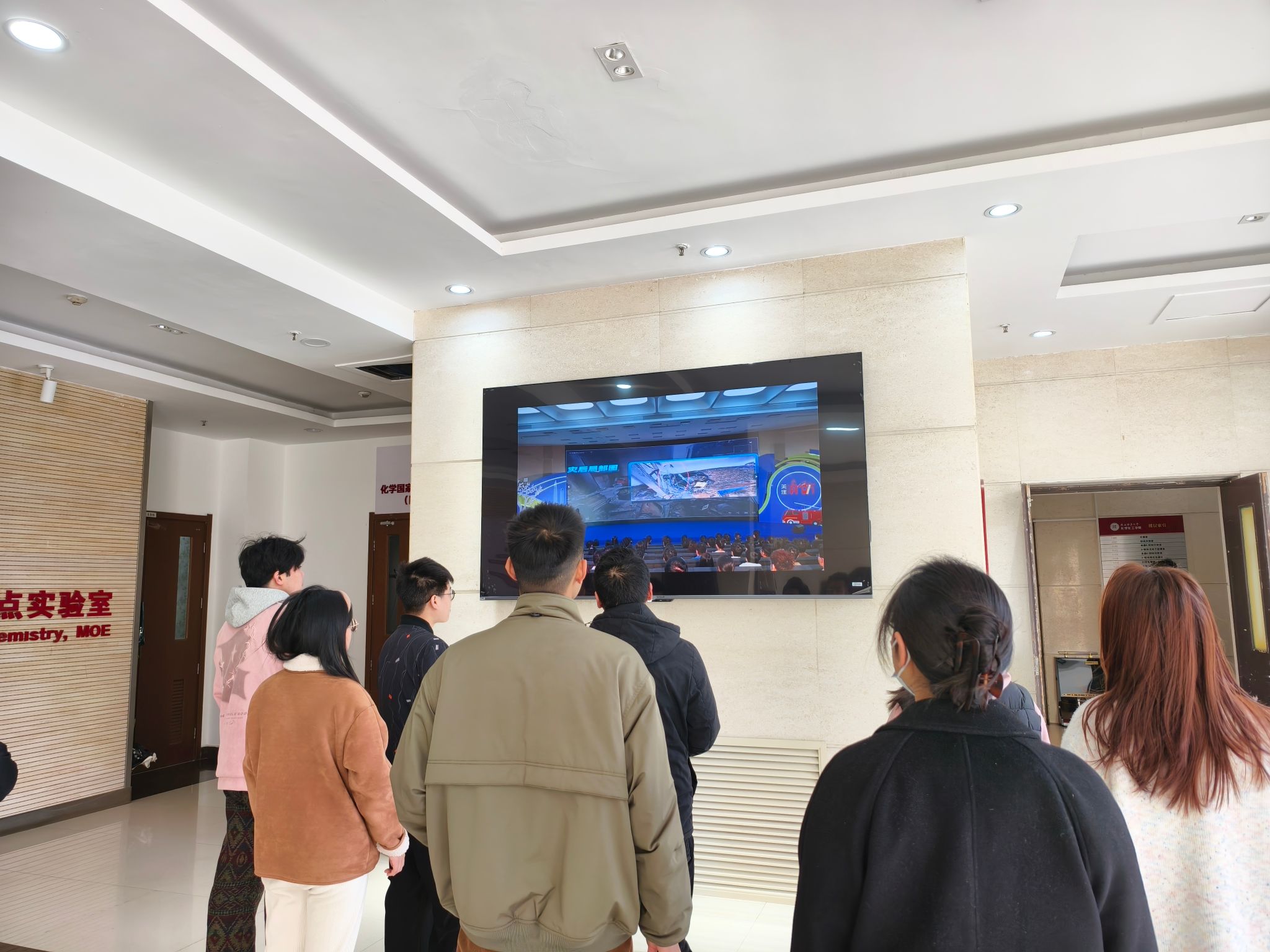 在活动筹备阶段,学院进行了细致安排。在1668会议室设立了分会场,组织2022级本科生以班级为单位有序观看直播,便于同学们集中学习、交流讨论;同时,在致知楼一段南大厅电子屏开启网络直播,方便其他师生随时驻足学习,确保尽可能多的师生能够参与到此次学习活动中来。