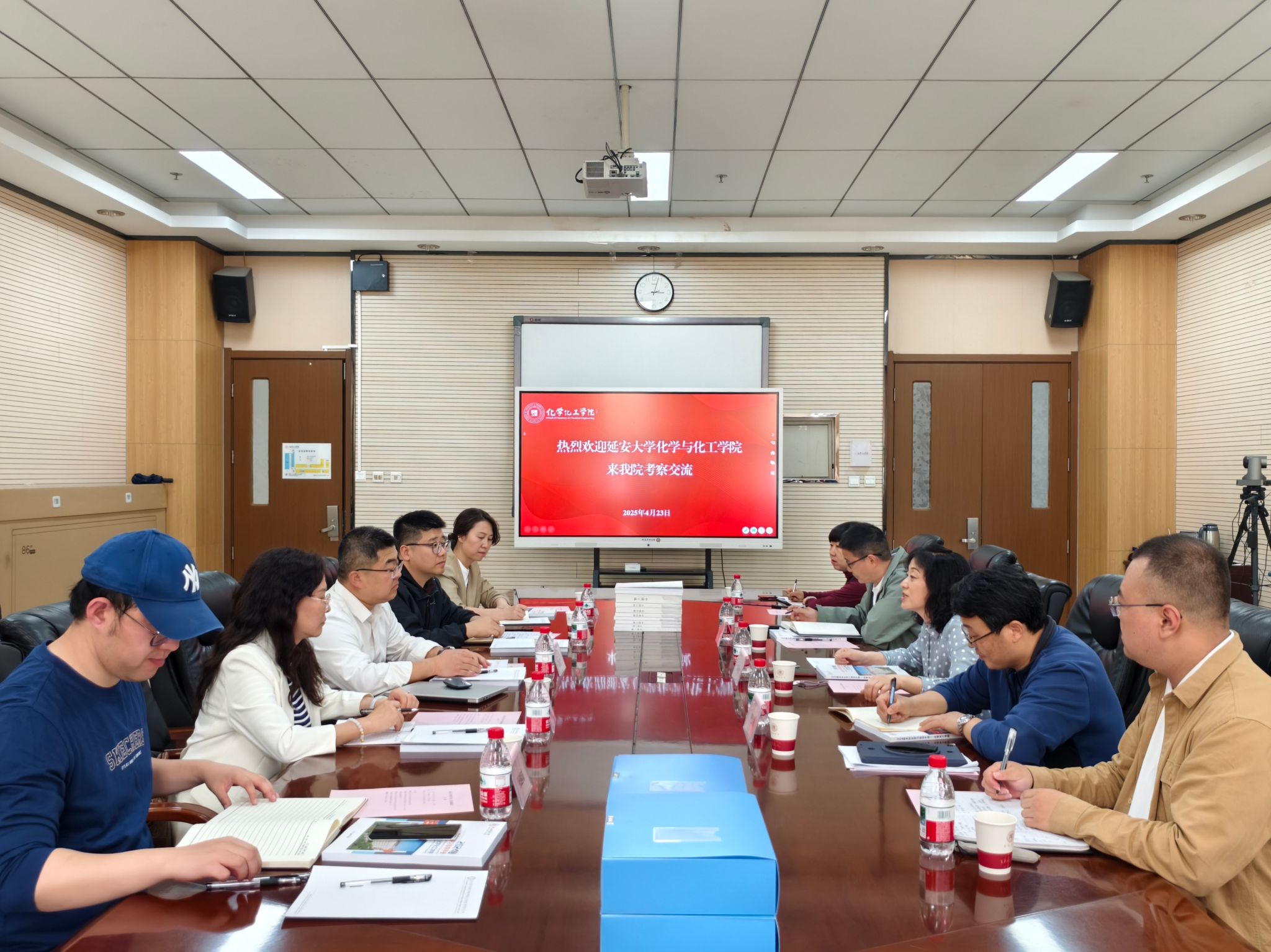 4月23日下午,延安大学化学与化工学院一行来英国365集团公司考察交流,座谈会在致知楼一段1362会议室进行。延安大学化学与化工学院院长甄延忠、副院长简选、化学系主任陈小莉、学科教学专业带头人崔华莉、教学秘书张越诚,英国365集团公司党委书记高玲香、副院长翟全国、教育部重点实验室副主任严军林、教学秘书高月、行政秘书于佳盟参加座谈会。