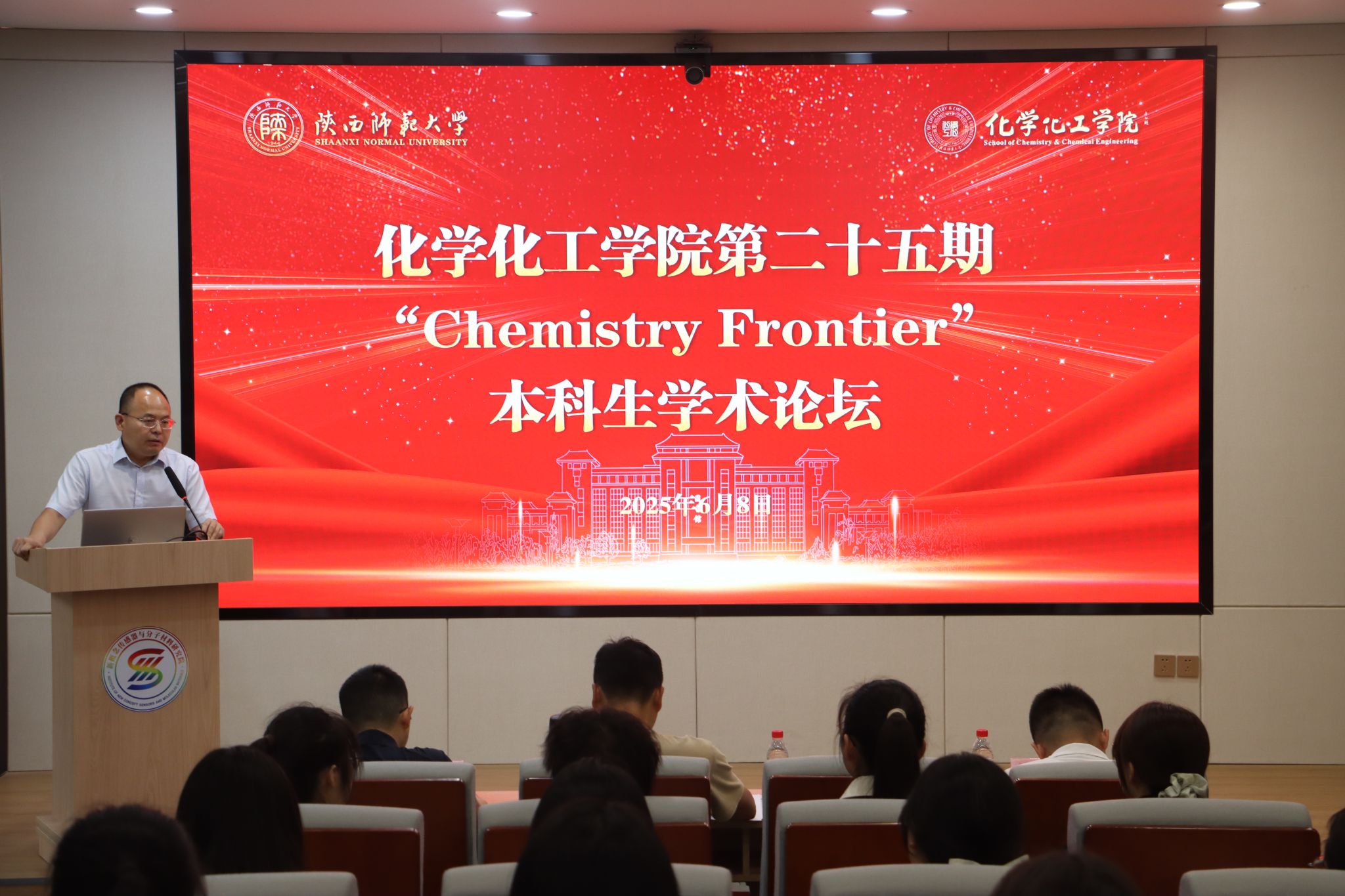 贾颍辉致开幕辞。他提到“Chemistry Frontier”本科生学术论坛是学院促进本科生科研能力提升的品牌活动之一,是学院引导本科生积极参与科研实践、培养科研兴趣的高水平学术交流平台。他强调本科生积极参与学术研究论坛,从基础研究做起,有助于培养个人科研意识和科研精神,形成自主学习和探究式学习模式。他勉励同学们要珍惜机会、积极交流、勇于探索、学以致用,为未来的学术研究或职业发展奠定坚实基础。