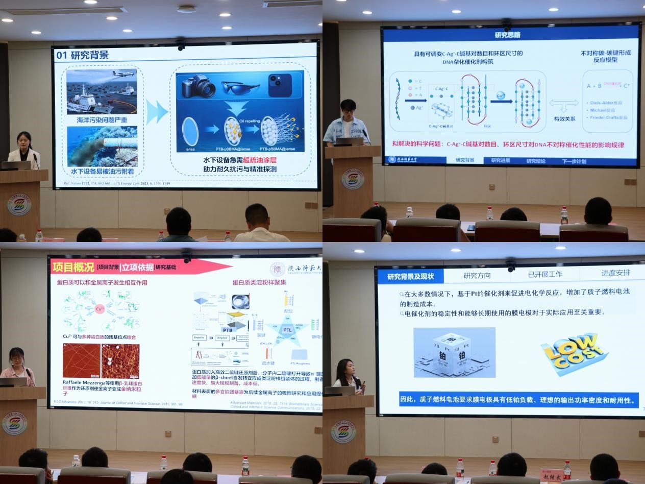 为营造浓厚学术氛围,激发本科生科研创新潜能,提升本科生学术交流能力,6月8日,学院在新概念传感器与分子材料研究院一层报告厅举办第二十五期“Chemistry Frontier”本科生学术论坛。学院党委副书记贾颍辉、本科生辅导员刘瑞及各年级本科生共150余人参加论坛。教师代表马艺、赵健、张航、任浩、乔金宝、薄鑫、赵继武担任评委,论坛由2022级笃学班班主任马艺主持。