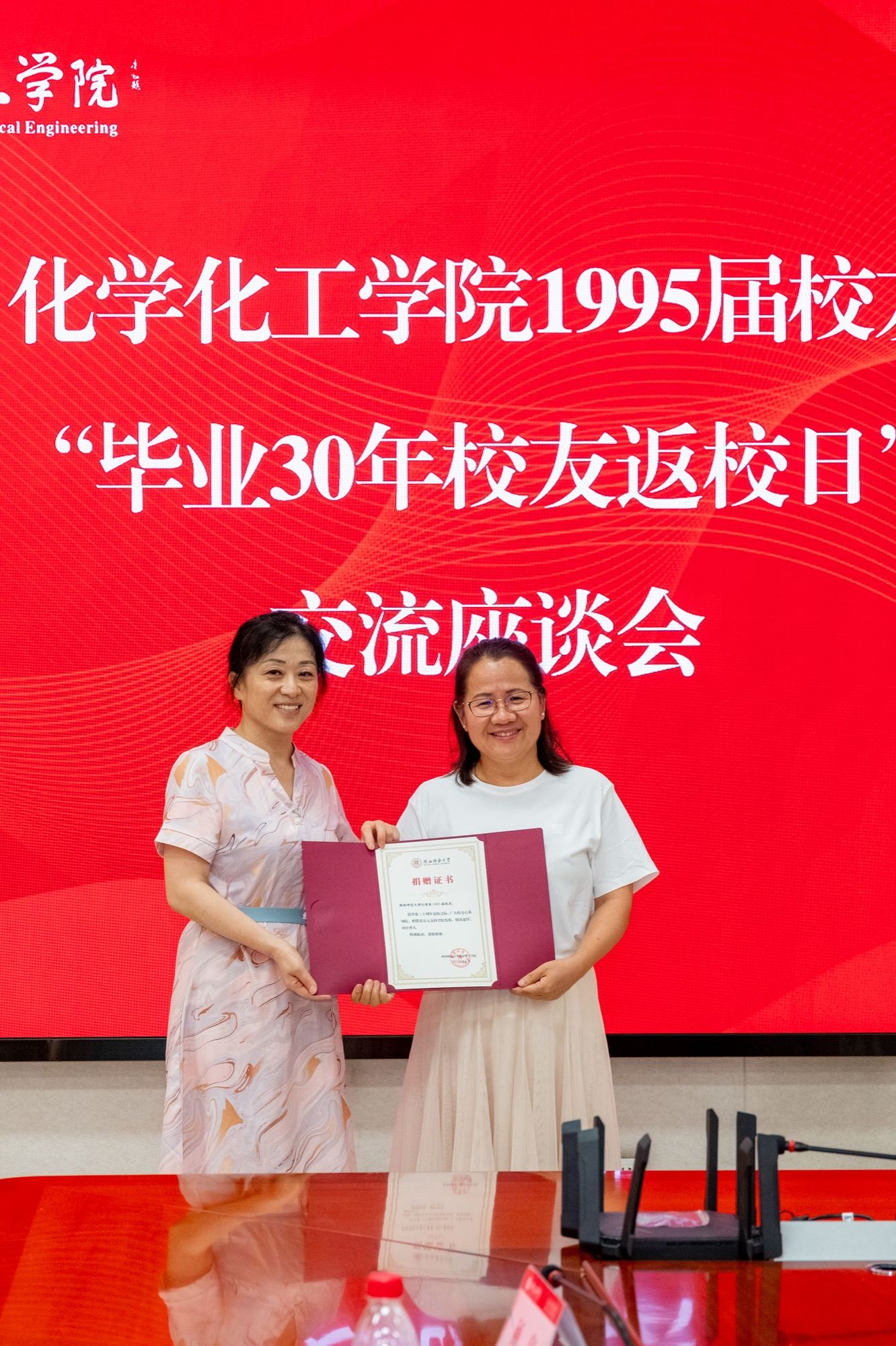学院为返校校友赠送纪念礼物,校友向学院捐资支持学院发展,并向时任教师代表敬献鲜花。校友代表畅叙当年学习生活的难忘点滴,表达了对母校的诚挚祝福,表示将立足岗位、奋发有为,不负母校的殷切期望。