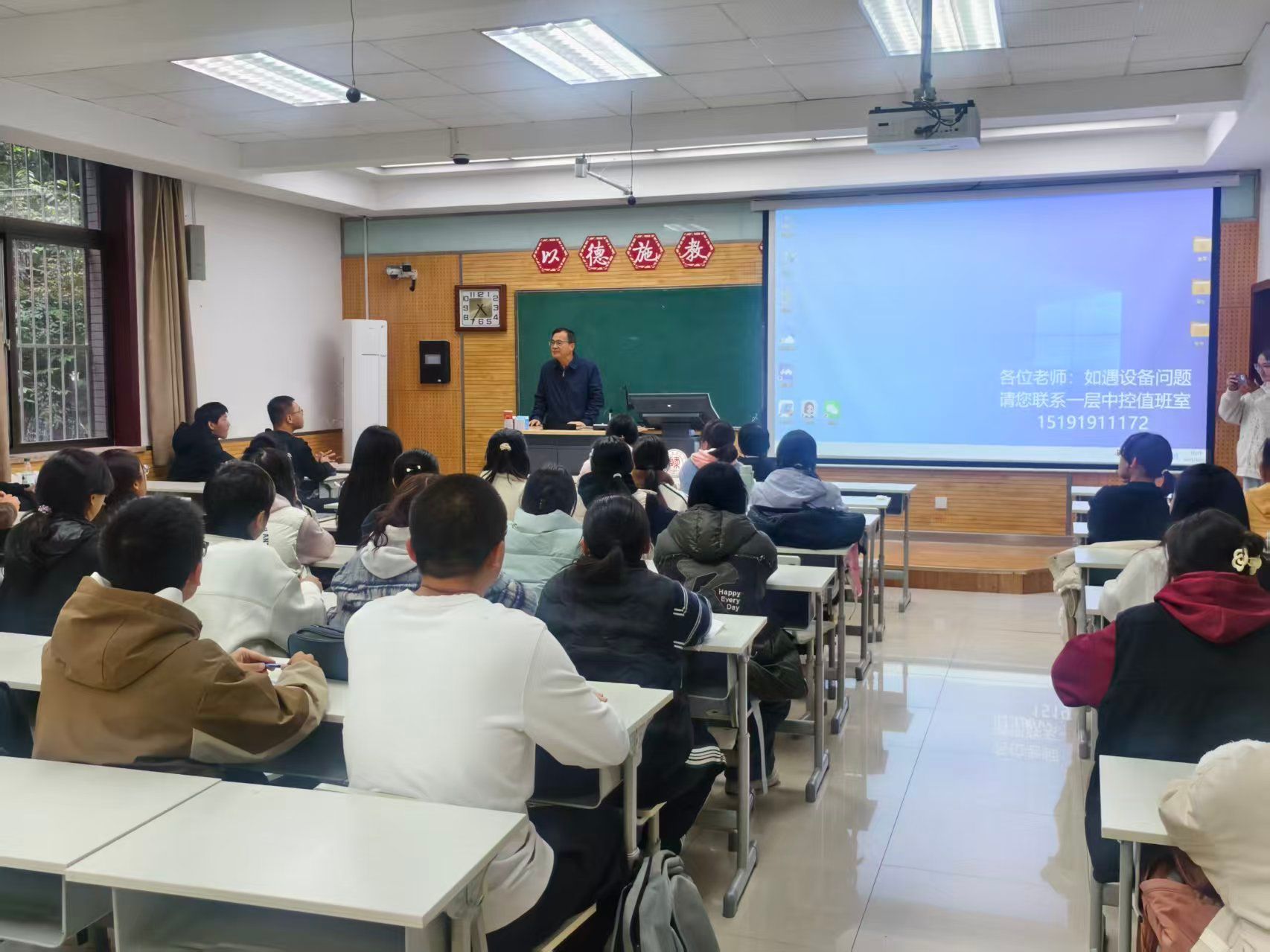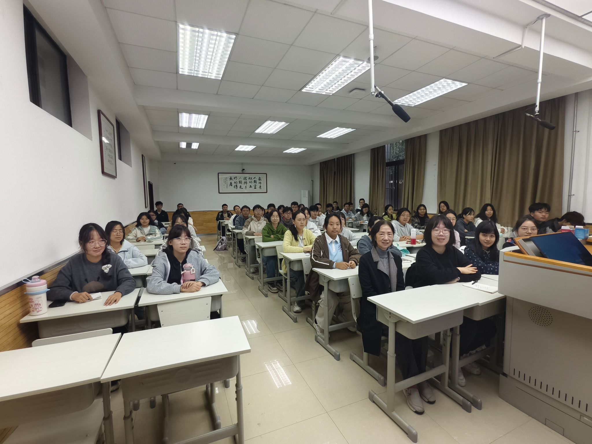 10月17日,化学2502班在雁塔校区教学五楼5102教室举办“教授接待日”活动,蒋育澄教授应邀参加。蒋教授以“苹果定律”教导同学们在大学生活中要懂得取舍,树立规划、明确目标;以“竹子定律”勉励同学们扎实根基、注重积累,唯有厚积方能薄发。
