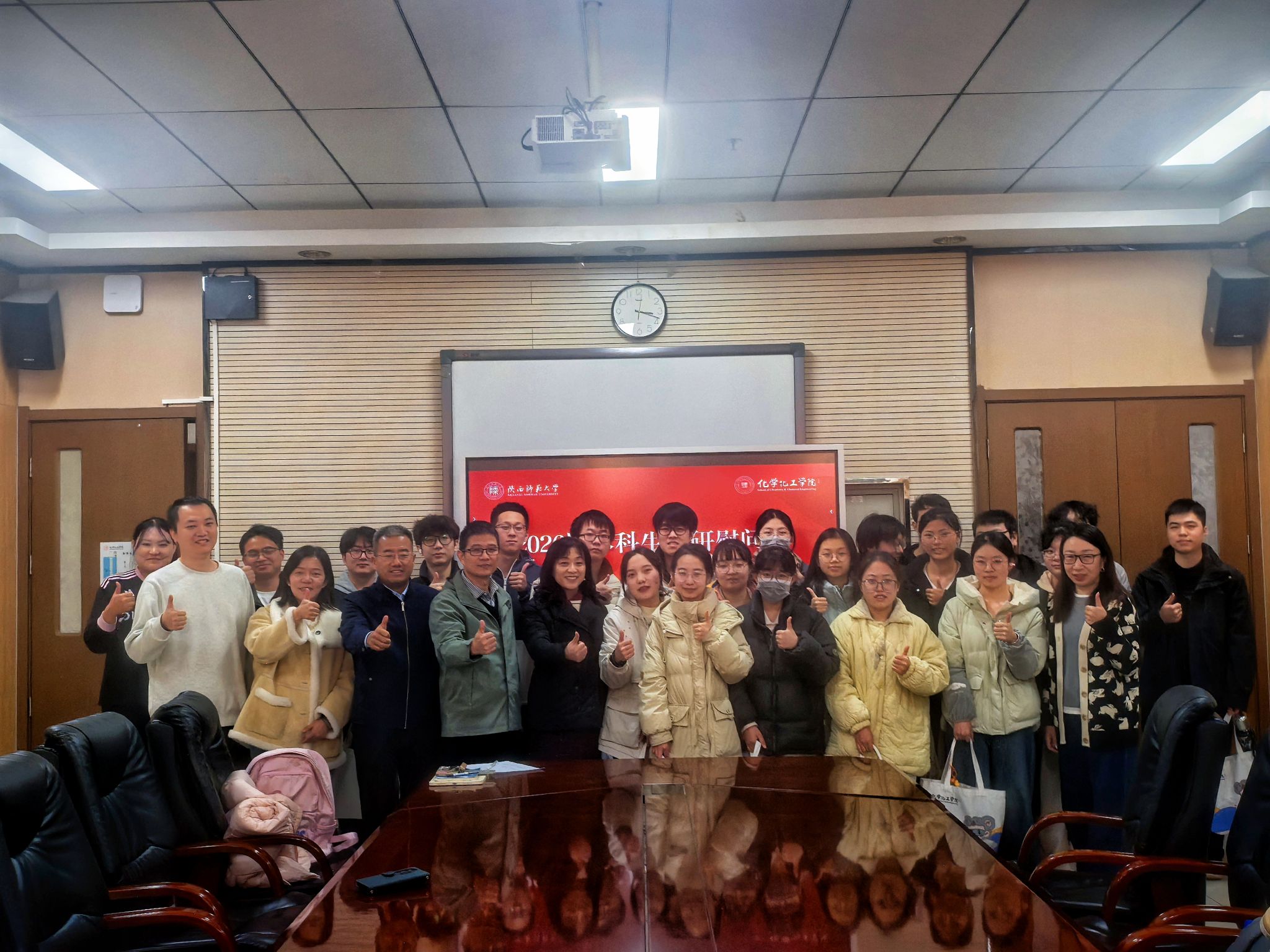 翟全国介绍了2026届本科生考研报考情况,着重分析了近年化学学科考研形势,引导同学们深化思想认识,坚定考研目标。肖新军充分肯定了同学们备考的付出与努力,鼓励大家发挥专业优势、优化复习方法、切实提升备考效率。