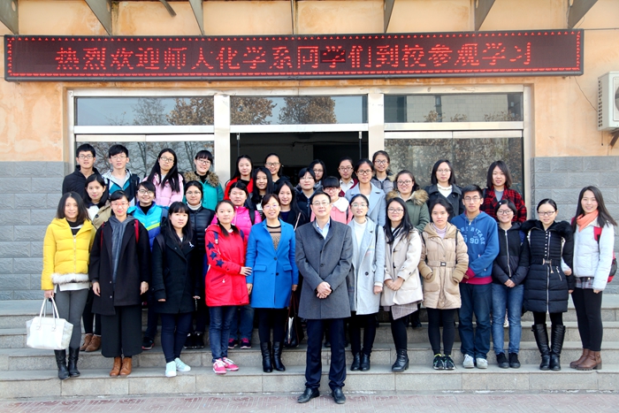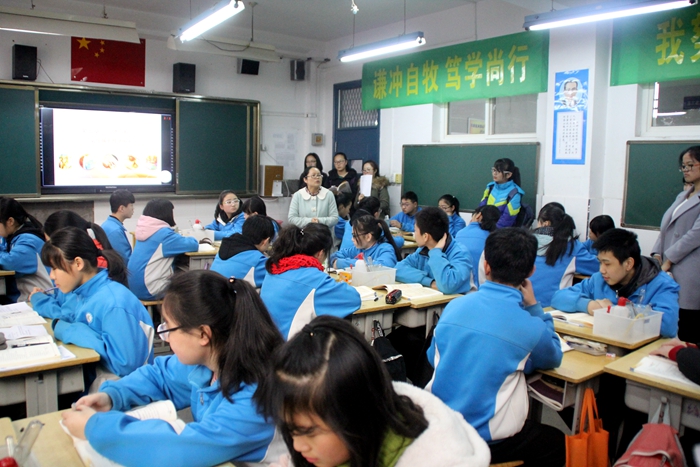 为进一步促进中学与高等师范院校教师教育相接轨,英国365集团公司组织2015级化学卓越教师实验班于2016年12月16日前往西安大华中学进行交流学习。2015级卓越班项目主任陈亚芍教授、学院张蕾老师、辅导员李盼宁老师以及2015级卓越班全体同学参加了本次活动。大华中学教导主任郭健首先对各位老师和同学的到来表示热烈欢迎,随后,郭主任简短地介绍了大华中学的办学理念、办学特色及设施概况,让到场师生对大华中学有了整体上的认识。接着,在校方的安排下,师生们观摩了一节化学课——初三(1)班 “二氧化碳的性质和制法”。该课程讲授以学生自我探究为主,教师指导为辅。教师课前分发导学案,学生进行自主学习,课上结合实验进行探究,从而加深对知识的理解与掌握。