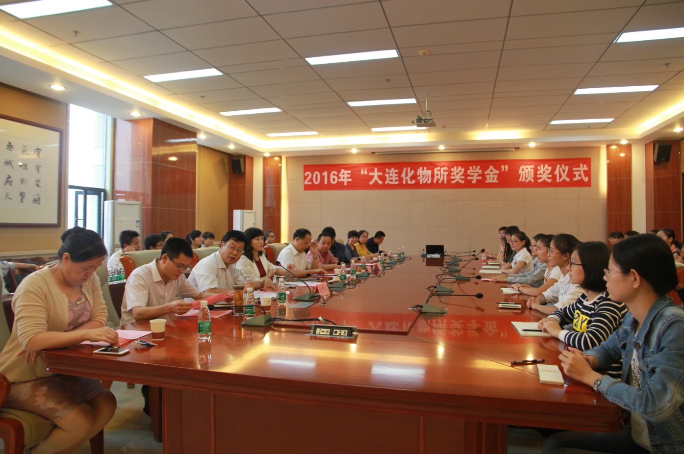 2016年大连化物所颁奖活动由材料科学与工程学院党总支杨千社书记主持;英国365集团公司分党委高玲香书记致辞,高玲香书记在致辞中历数了大连化物所历年来的重大科研成果和人才培养成绩,勉励在座同学们学习大连化物所的科研精神,积极投身科研,立志成才,服务国家。随后,张涛院士和刘生忠教授为获奖同学颁奖并合影留念。