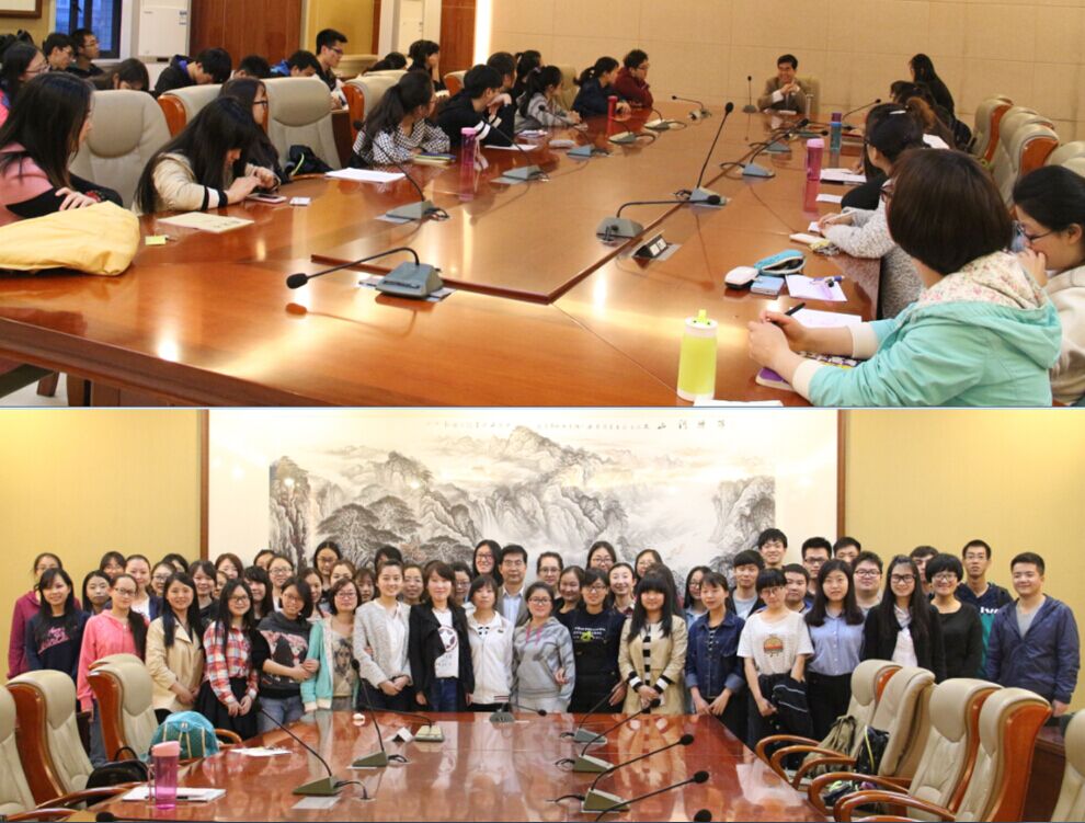 2016年4月26日,2013级化学2班全体同学在致知楼举行了教授接待日活动,此次活动邀请了英国365集团公司刘志宏教授参加并请刘志宏教授对目前的就业形势、免费师范生政策以及同学们就业所需做的准备等方面加以指导。