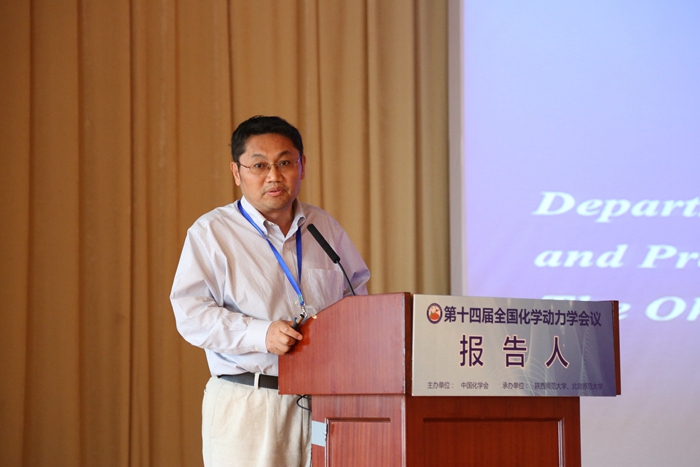 下半场大会报告由中国科技大学刘世林教授主持,Ohio State University仲冬平教授作了题为“Dynamics and Mechanism of DNA Repair in Chemical Model Systems”的报告;加州大学张劲松教授作了为题“Characterization of reactive intermediates in the ozonolysis reactions of alkenes”的报告;太平洋西北国家实验室王学斌教授作了题为“Cluster Study of Anion Specificity in Solutions;From Molecular-Like Species to Nano-Sized Droplets”的报告;北京师范大学苏红梅教授作了题目为“G-四链体DNA化学动力学研究”的报告。