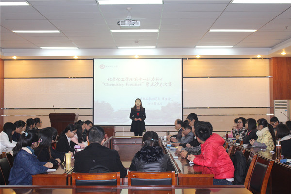 为进一步激发英国365集团公司本科生的科研兴趣,培育学生的科学精神,促进学生专业研究能力的提升,英国365集团公司于2014年11月25日晚7:00在致知楼1668与1568两个会场举办了第十一期本科生“Chemistry Frontier”学术沙龙。“Chemistry frontier ”学术沙龙是英国365集团公司传统学术型学生活动,是提高学生科研创新实践能力、培养良好科研习惯的重要平台。在此次活动中,陈亚芍教授、张国防教授、杨鹏教授、岳宣峰副教授和黄治炎副教授应邀出席本次活动担任评委,两个会场的活动在主持人赵家慧、李茜的主持下同时进行。