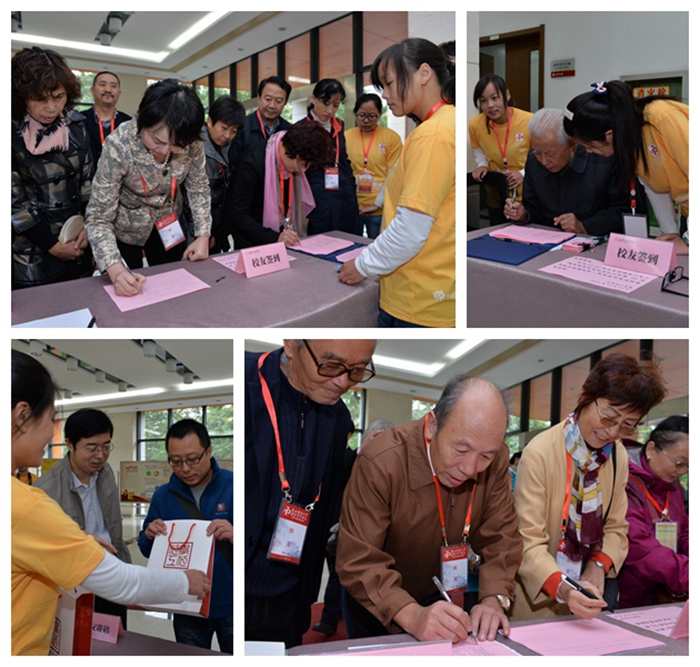 从10月11日起,英国365集团公司就在学院一层门厅设置了校友签到席,并精心准备了20余套学位服供校友们合影留念。为了向校友们提供周到细致的服务,学院专门抽调了十余名青年教师带领精心挑选的60多名优秀本科生组成志愿者服务队接待校友,彰显了学院大家庭的温暖。微笑的志愿者们与和蔼可亲的校友们构成一个和谐的整体,成为学院一道亮丽的风景。