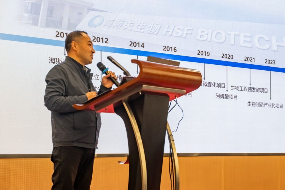 在随后举行的微生物制造技术发展研讨会上,赵鹏涛博士和张帅博士分别以“食品加工与智能监测研究进展”和“膳食类凝胶与功能材料研究进展”为题作了报告。孟永宏教授进一步介绍了海斯夫公司的经营理念和目标愿景,并介绍了陕西省合成生物与智能制造创新中心的相关情况。马佳妮、边红涛老师分别提问,与报告人进行了讨论交流。房喻院士在总结讲话中肯定了海斯夫艰苦奋斗的企业精神,希望海斯夫的发展越来越好。