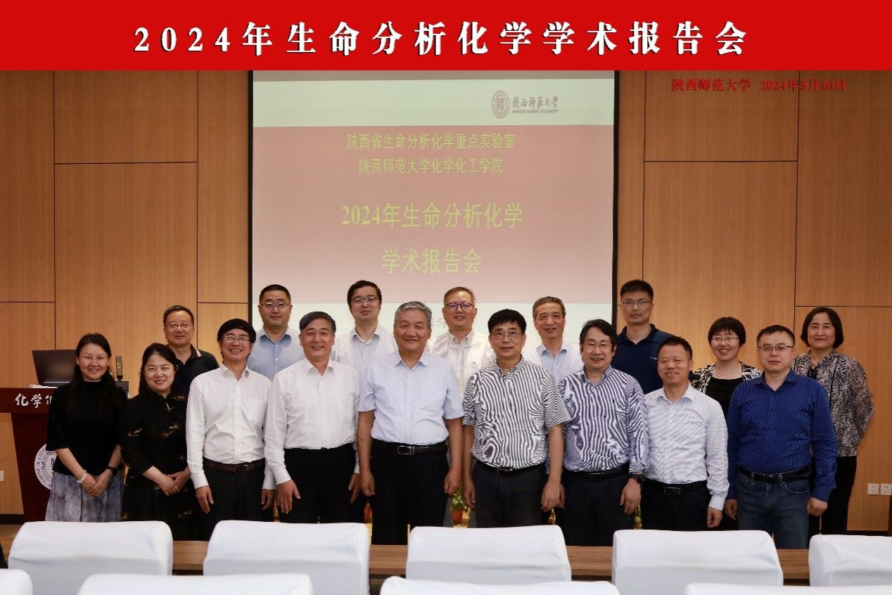 为庆祝陕西师范大学建校80年华诞,全面贯彻新发展理念,服务新质生产力,2024年5月10-11日,英国365集团公司与陕西省生命分析化学重点实验室联合举办的“2024年生命分析化学学术报告会”在长安校区致知楼1668报告厅成功举行。本次报告会邀请了来自清华大学、北京大学、香港浸会大学、中科院化学所、浙江大学、南京大学、四川大学、东北大学、北京工业大学、中国科学技术大学、中科院生态环境研究中心和中国医学科学院药物研究所的14位分析化学相关领域的著名专家学者参会并做特邀报告。来自西安交通大学、西北农林科技大学、西北工业大学、西北大学、西安科技大学以及我校150余位分析化学及其相关学科的师生参加了此次会议。