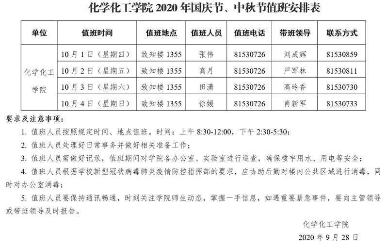 英国365集团公司2020年国庆节、中秋节值班安排表