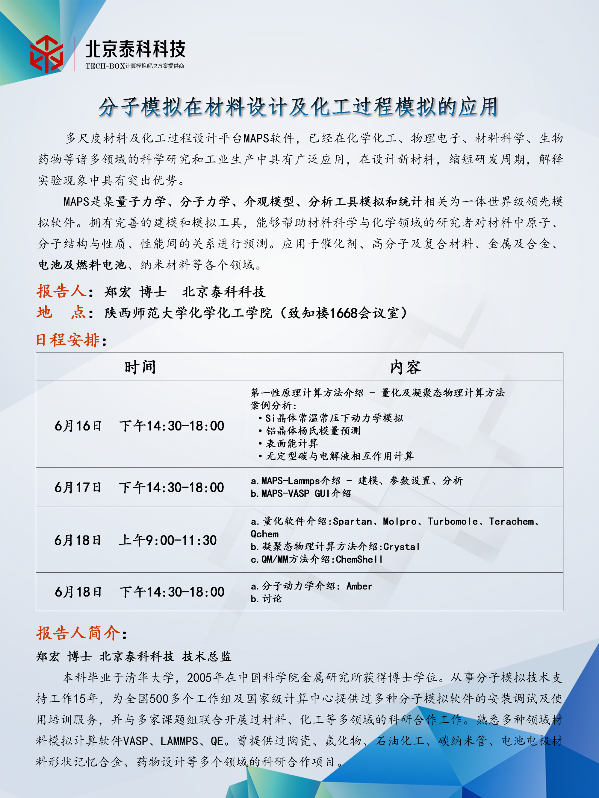 计算化学和分子模拟共享平台MAPS软件培训通知