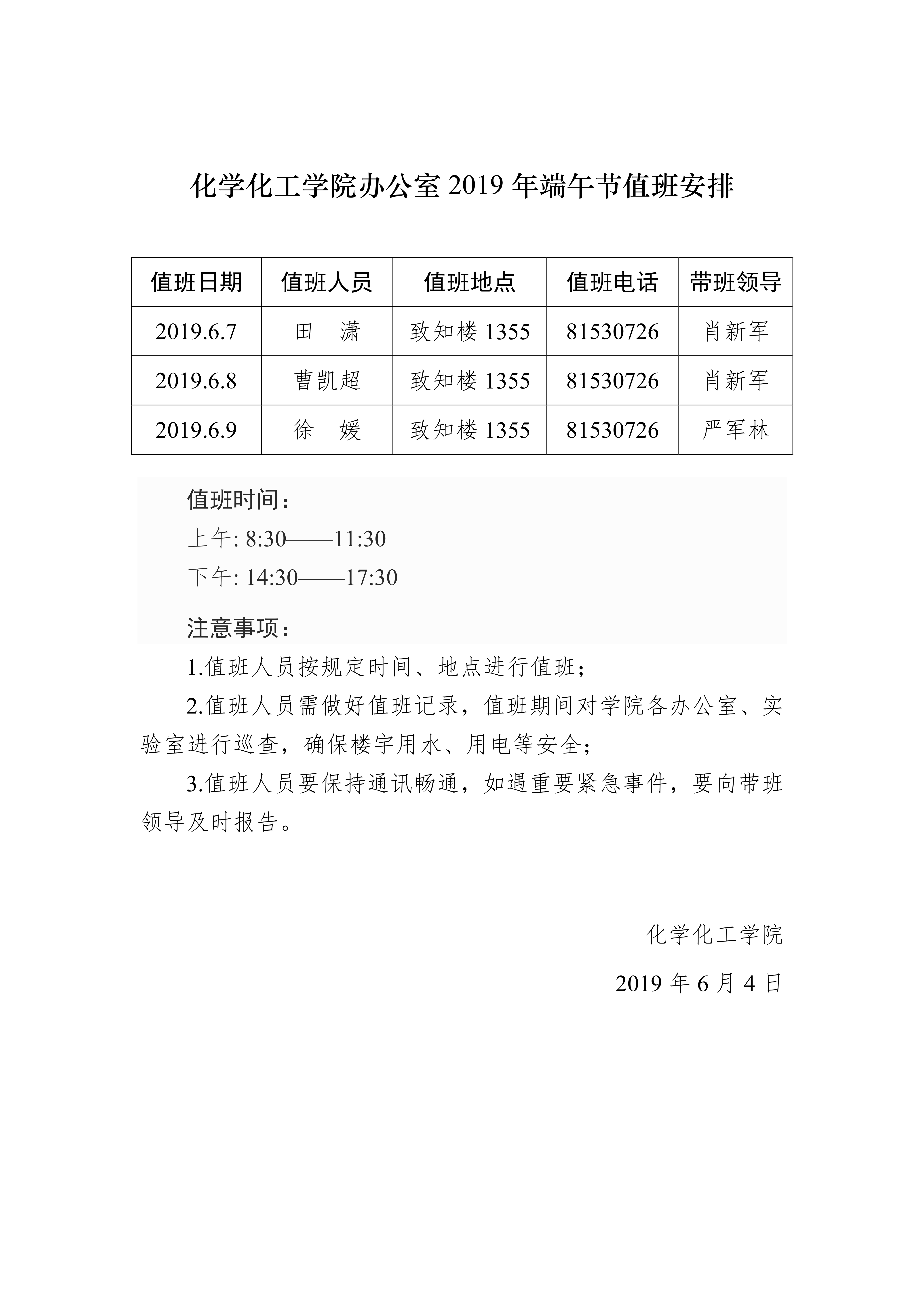英国365集团公司办公室2019年端午节值班安排