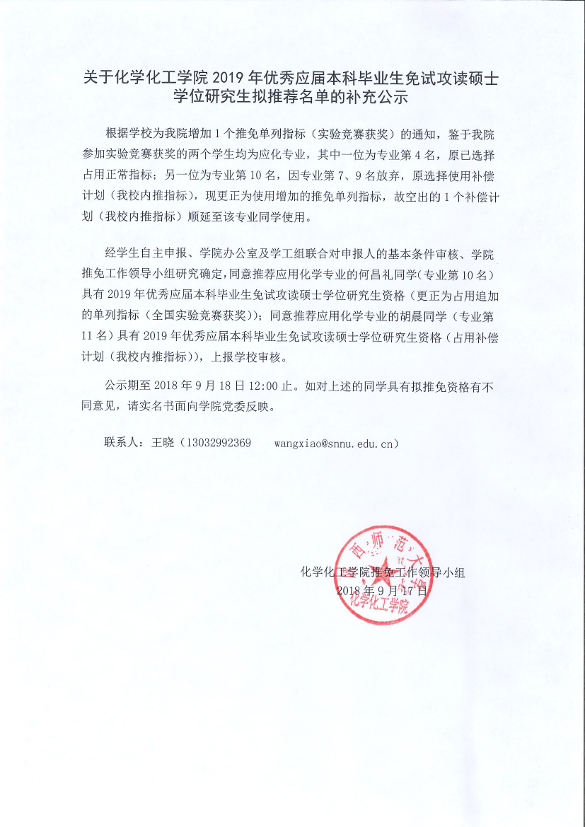 关于英国365集团公司2019年优秀应届本科毕业生免试攻读硕士学位研究生拟推荐名单的补充公示