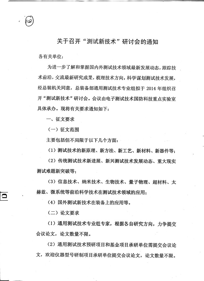 关于召开测试新技术研讨会的通知