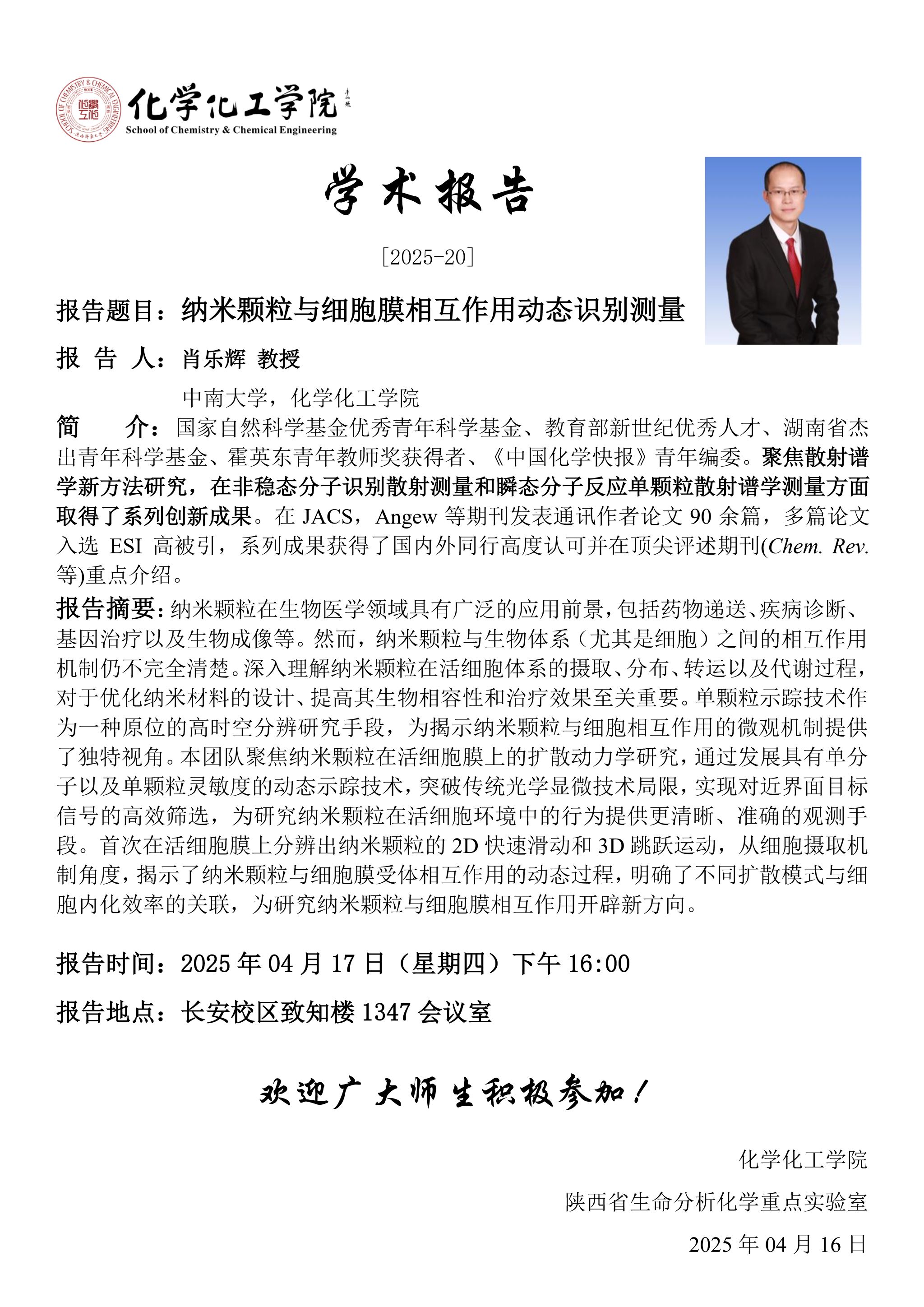 地址:陕西师范大学长安校区致知楼一段