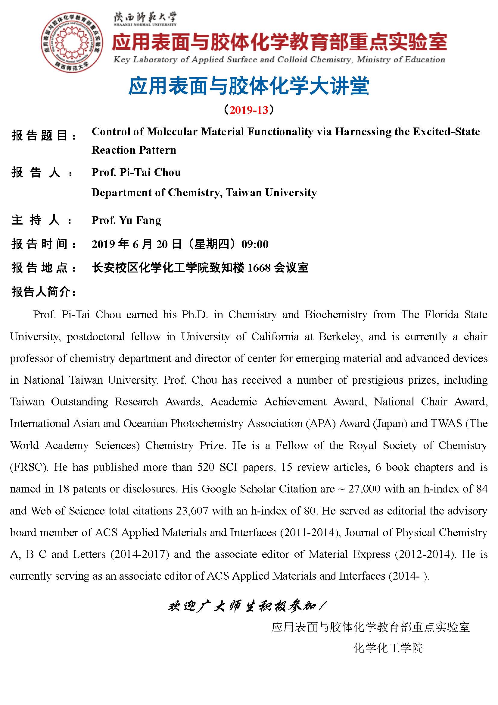 地址:陕西师范大学长安校区致知楼一段