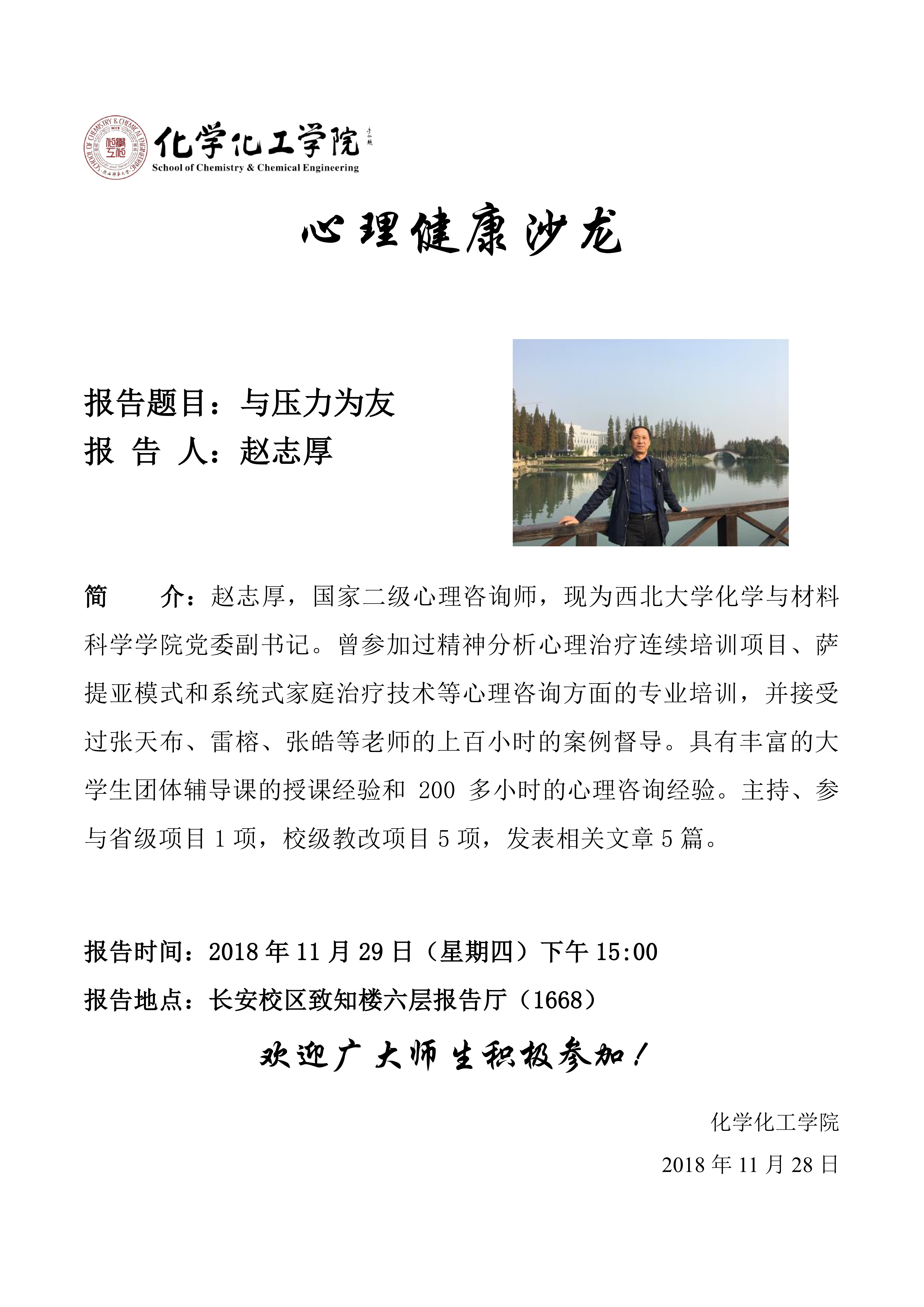地址:陕西师范大学长安校区致知楼一段
