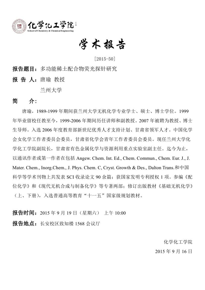 地址:陕西师范大学长安校区致知楼一段