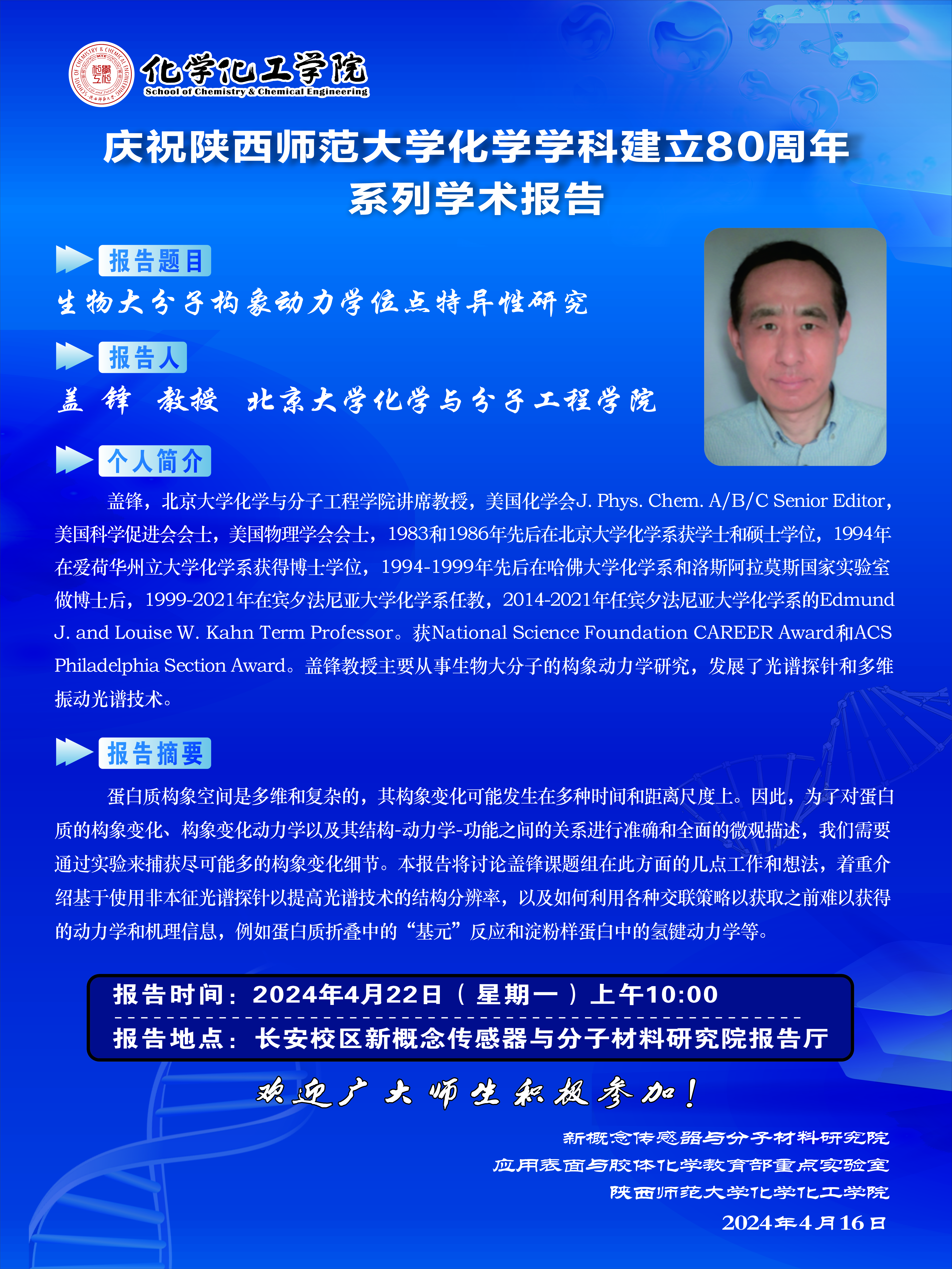 地址:陕西师范大学长安校区致知楼一段