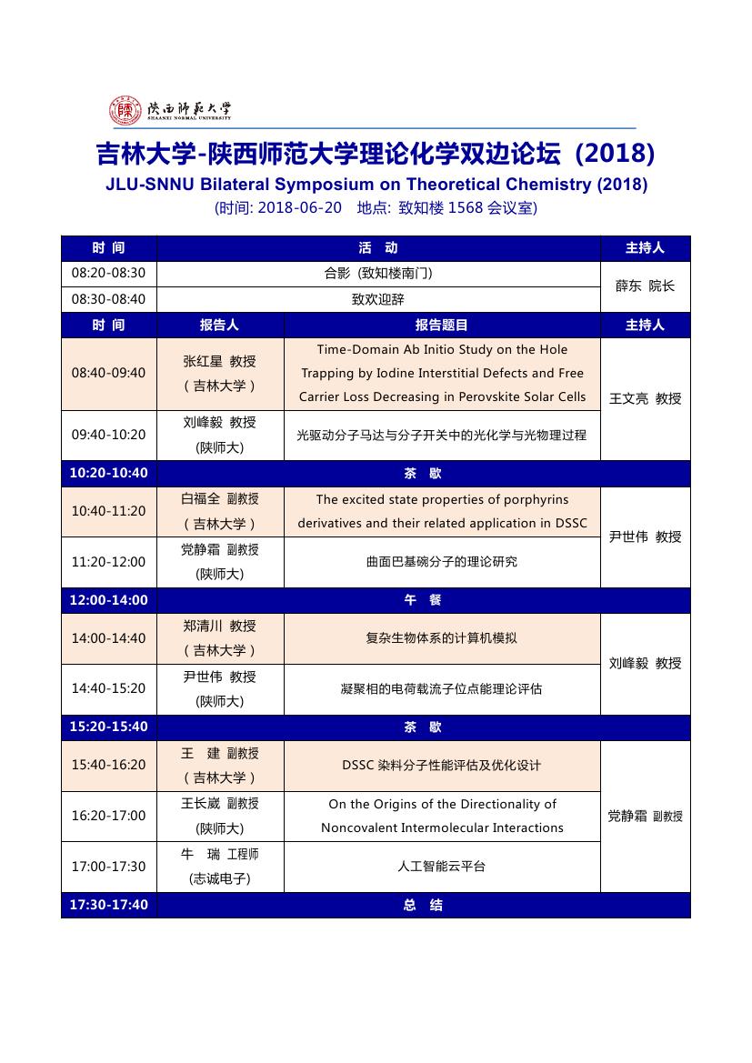 吉林大学-陕西师范大学理论化学双边论坛 (2018)
