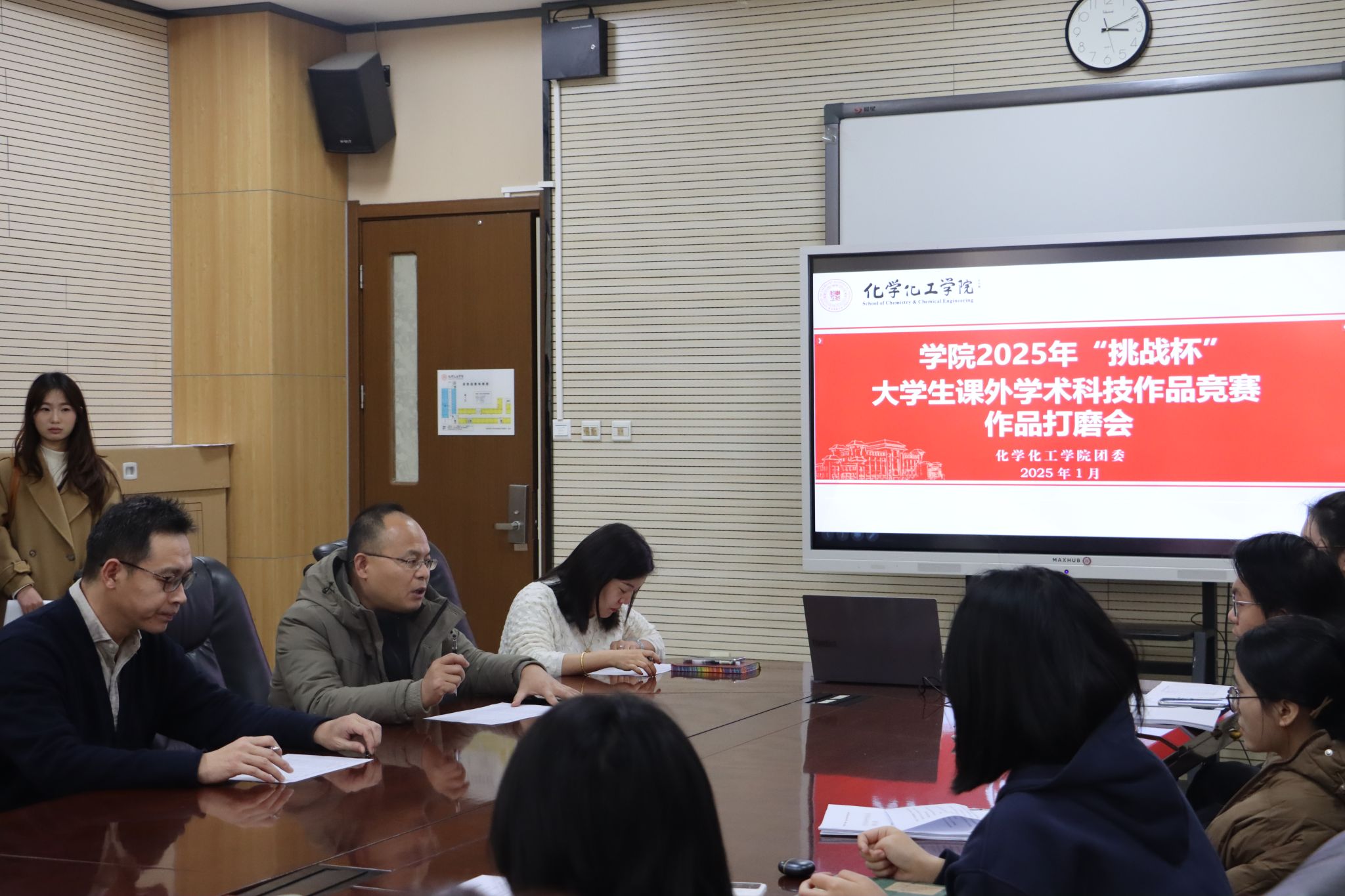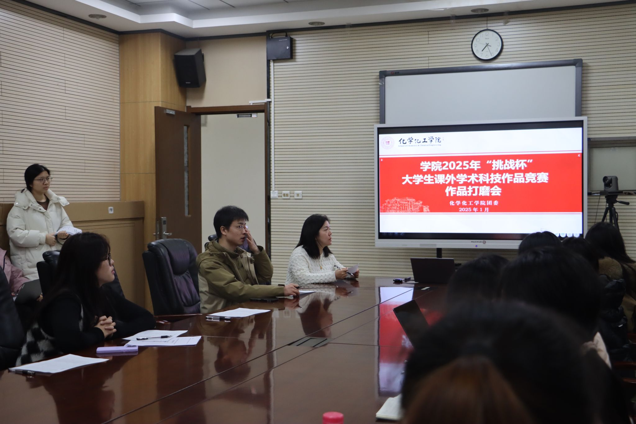 为了进一步培养和提升学生的创新精神、创新意识以及创业能力,完善并精进学院的各项竞赛项目,营造积极向上的学术氛围,学院于1月6日在致知楼的1362会议室举办了2025年“挑战杯”大学生课外学术科技作品竞赛院赛暨作品打磨会。