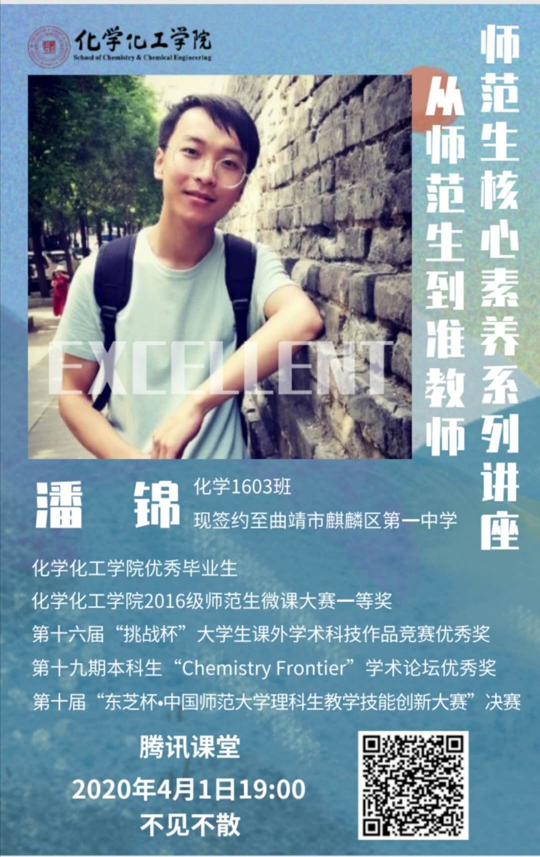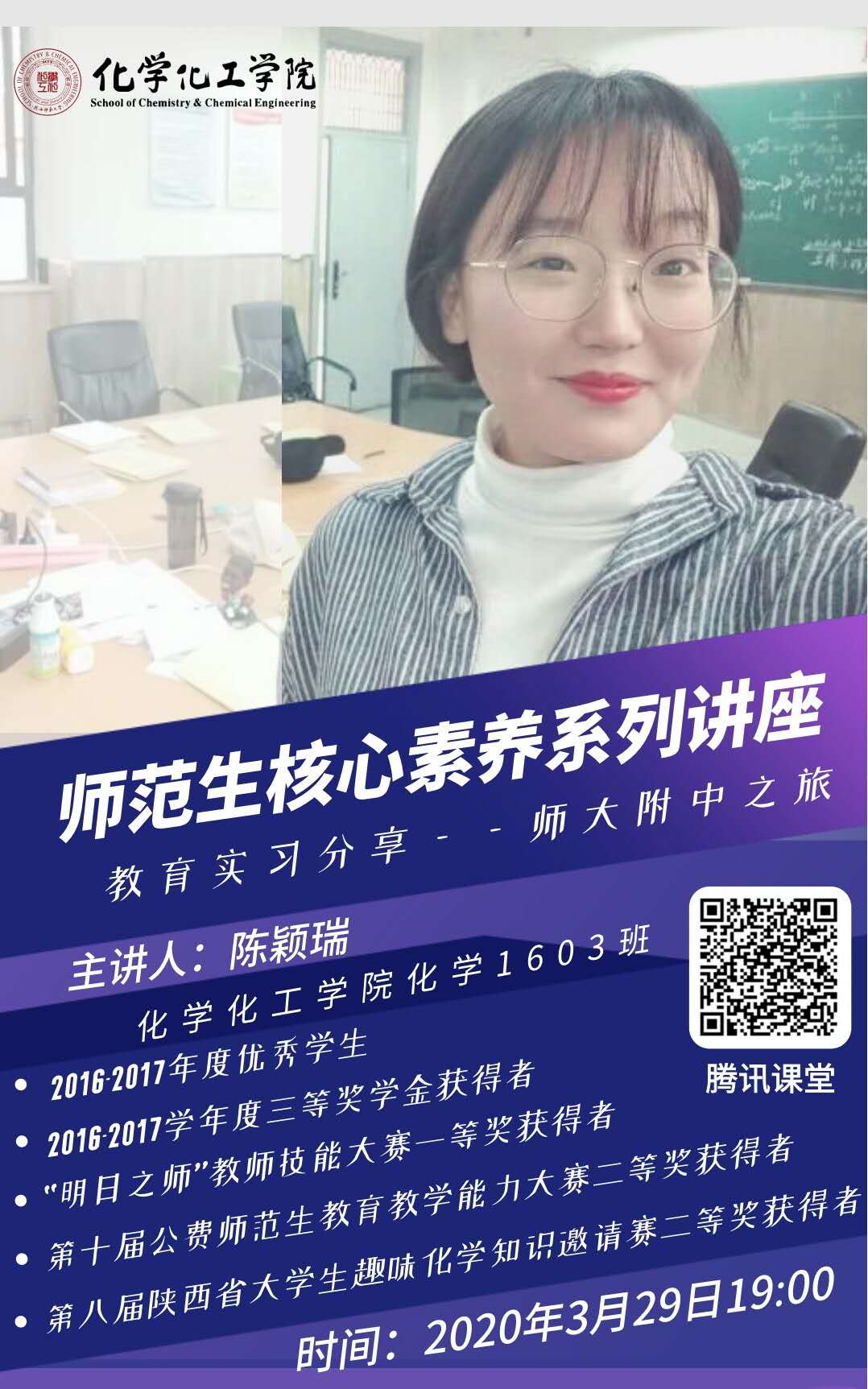 当前,全民抗击新冠肺炎疫情的斗争仍然持续进行,英国365集团公司学子仍然坚持居家隔离,开展在线学习。为了提升师范生的教师核心素养,解决师范生对自身发展的疑惑,英国365集团公司学生会组织部开展了“学而为师,行为世范”的师范生核心素养专题线上讲座。自3月29日起,三场各具特色的专题讲座借助腾讯课堂线上平台陆续开展。我们有幸邀请到英国365集团公司16级优秀学子陈颖瑞、折凌云和潘锦来为大家分享知识经验和学习资源,众多化院师范生踊跃参与,线上课堂“座无虚席”,现场气氛积极活跃。