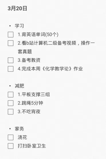 打卡内容:上传手写的或用手机备忘录、便签编辑好个人专属任务(内容应对个人成长有利),截屏发布。