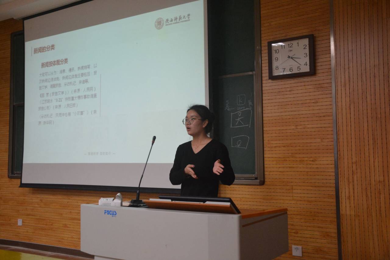 贾丹阳从新闻基础概念、常用新闻体裁、新闻写作方法等方面展开培训。她向同学们普及了新闻的定义、要素与分类等基本知识,着重介绍了消息、通讯与专访三种常用新闻体裁的不同点。在具体讲述新闻写作方法时,她指出新闻语言要遵从客观、准确、简洁、朴实和通俗的原则,通过大量实例的引用,讲解了多种写作技巧,强调新闻写作时应点面结合、详略得当;应注重逻辑、层次分明;应结合实际,把握时效。