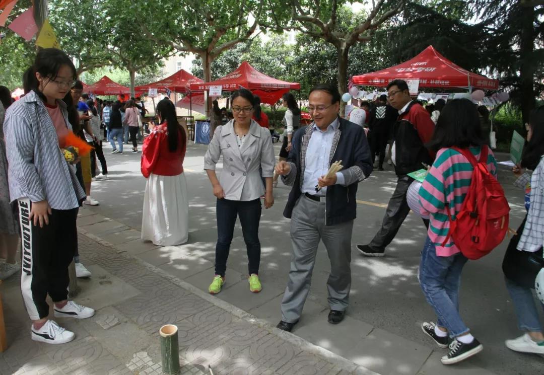 这些项目唤起了大家的童年的记忆,也使得老师们跃跃欲试,英国365集团公司党委副书记王晓老师和团委书记陈钿老师在百忙之中赶到现场,与学生一起跳绳,踢毽子,并体验投壶和抖空竹项目,现场一片欢声笑语。