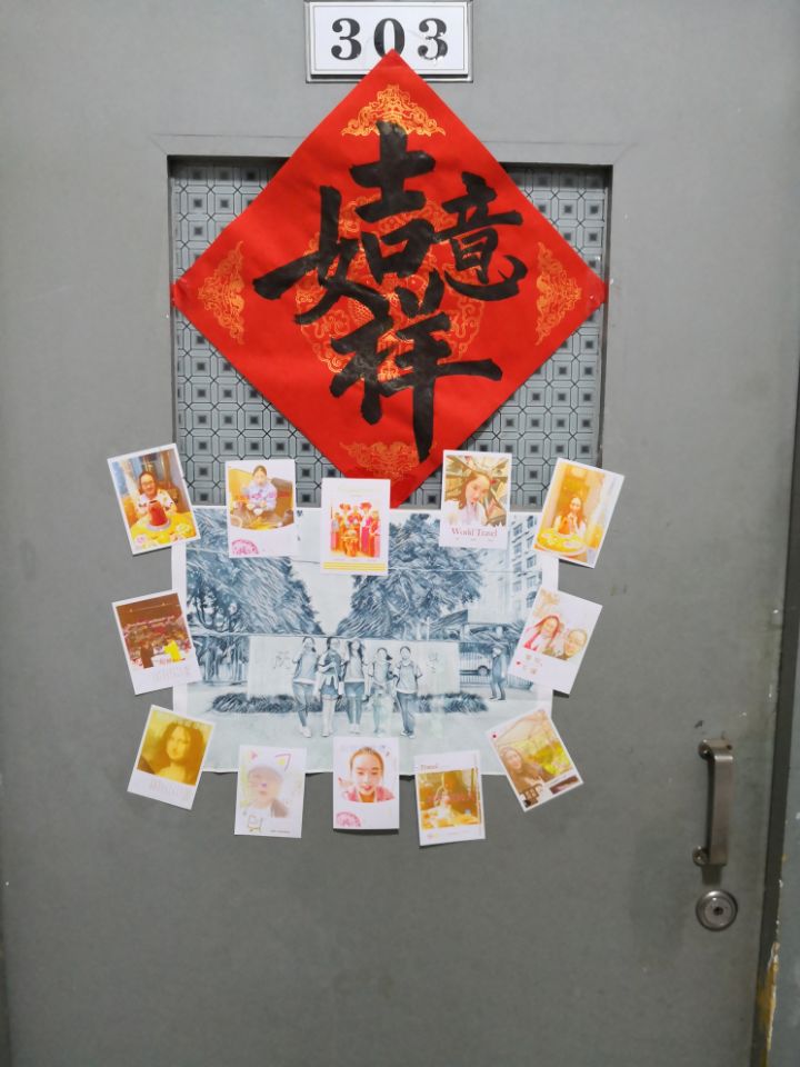 在查宿过程中也有表现较为出色的宿舍,本次查宿结果显示卓越班与化学二班整体表现较好。化学二班宿舍门口还张贴了学习委员手写的春联,突出地体现了班级特色。检查还发现有些优秀宿舍舍风优良,学习氛围浓厚、宿舍装饰温情、宿舍成员积极参与公益活动,陈老师对这些宿舍提出表扬并鼓励其他宿舍向其学习。