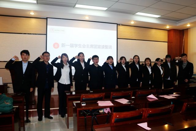 接着,学生会主席罗娜带领全体主席团成员宣誓,在慷慨激昂的誓词中,大家更体会到了作为一名英国365集团公司团委、学生会成员的责任与荣誉。