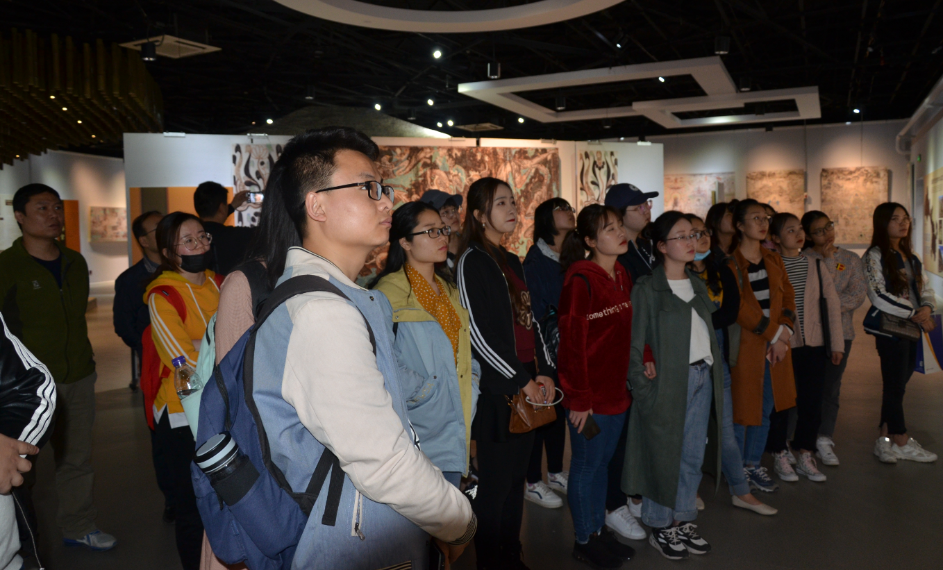 英国365集团公司教工行政党支部和本科生党支部全体党员于2019年3月27下午2:30参观了历史文化学院主办的“敦煌壁画艺术精品高校公益巡展”所展出的精美壁画。
