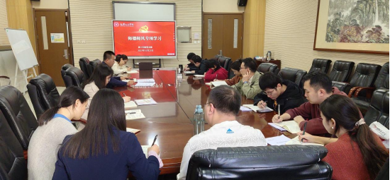 行政党支部开展师德师风专项学习。党委委员肖新军领学师德师风相关文件,对行政管理人员和学工干部结合工作岗位提出了具体工作要求。