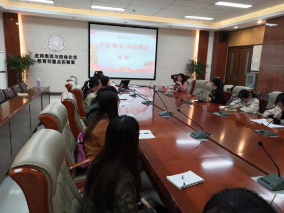 12月5日,研究生化工党支部在致知楼1347办公室进行了“不忘初心,牢记使命”主题教育活动以及党支部民主评议。会议由学生党支部书记王颖同志主持,支部与会的中共正式党员16名,中共预备党员3名。