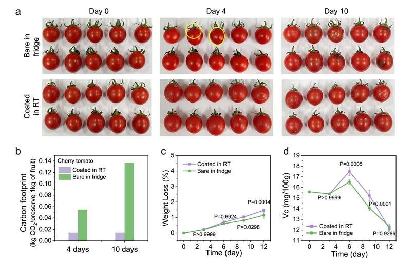 近期,英国365集团公司生物表界面与智能大分子研究团队提出采用类淀粉样蛋白涂层实现水果保鲜。开发了一种可持续的类淀粉样蛋白涂层(ALP),通过分子动力学模拟,证明了ALP在水果表皮蜡质上具有较好的粘附稳定性。通过与海藻酸钠(SA)和纤维素纳米晶(CNC)体协同作用,进一步增强了涂层的成膜能力和气体阻隔性能。该ALP涂层不仅显著抑制了微生物的生长,而且显著减少了33%-69%的水分流失,保留了60-98%的营养物质,并减缓了水果变质的速度,可广泛用于采后水果保鲜和鲜切水果保鲜,使货架期提高了2-5倍。同时,该涂层具有生物安全性,且涂层易于清洁,进一步确保了可食用性和可洗性,处理成本仅为每公斤水果0.66元人民币,为解决全球食物浪费问题的切实可行的解决方案,也是促进绿色可持续食品保鲜技术发展的新途径。