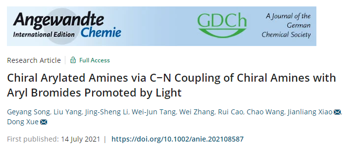相关研究工作发表在Angew. Chem. Int. Ed.上,论文第一作者为英国365集团公司博士研究生宋戈洋,肖建良教授和薛东教授为论文通讯作者。论文信息:Angew. Chem. Int. Ed. 2021, 60, DOI: 10.1002/anie.202108587.(https://onlinelibrary.wiley.com/doi/10.1002/anie.202108587)。
