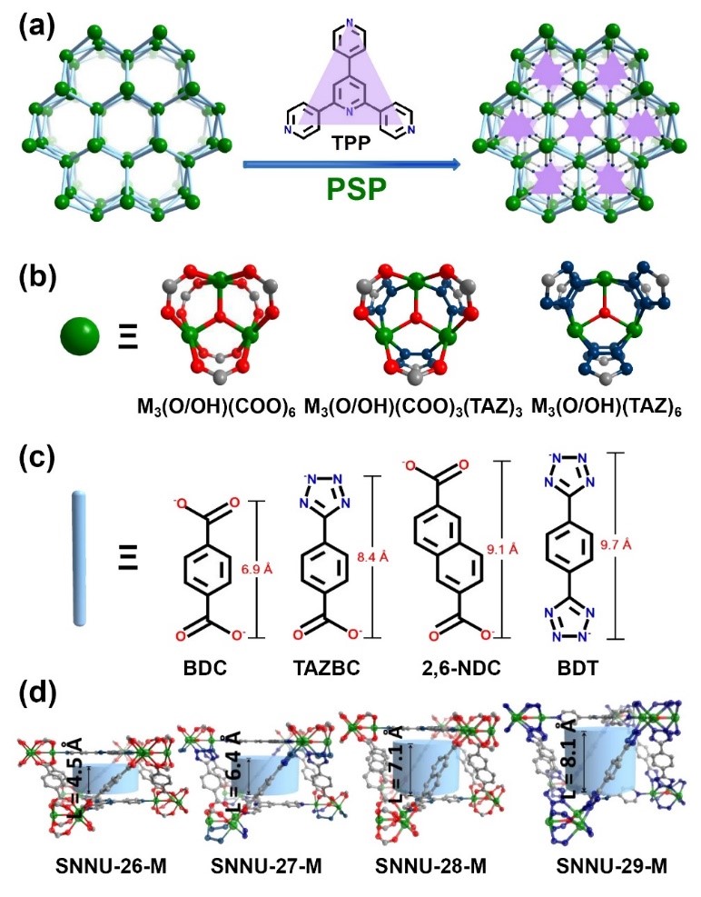 乙炔作为最简单的炔烃,是一种非常重要的有机化工基础原料,但其较高的反应活性使得不能在加压液化后贮存或运输。同时在乙炔生产过程中,常含有一些影响乙炔后续使用效益的杂质,如二氧化碳等。由于乙炔和二氧化碳分子的沸点、动力学尺寸和分子极性等性质相似,是目前气体分离的难题之一。金属-有机框架材料(MOFs)作为一种新兴的多孔材料在气体存储与分离领域展现出巨大的潜力。然而,如何突破多孔材料的高吸附容量和高选择性之间的Trade-off效应,设计实现兼具高效乙炔存储和分离性能的MOF材料仍极具挑战。