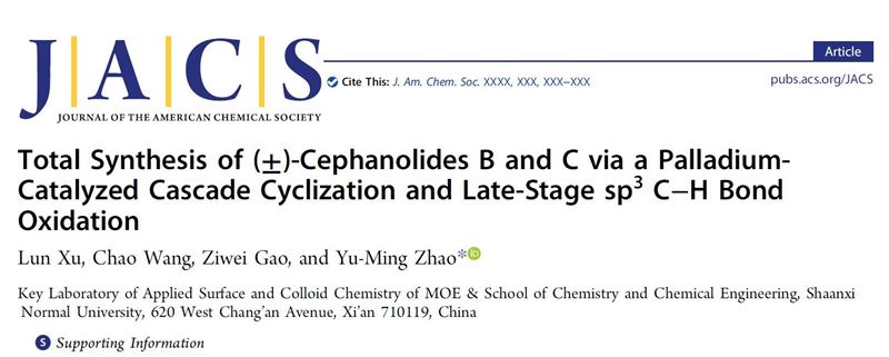 全文详见:Lun Xu, Chao Wang, Ziwei Gao, and Yu-Ming Zhao*; Total Synthesis of (±)-Cephanolides B and C via a Palladium-Catalyzed Cascade Cyclization and Late-Stage sp3 C–H Bond Oxidation; J. Am. Chem. Soc., 2018, ASAP; DOI: 10.1021/jacs.8b03015 (https://pubs.acs.org/doi/10.1021/jacs.8b03015).